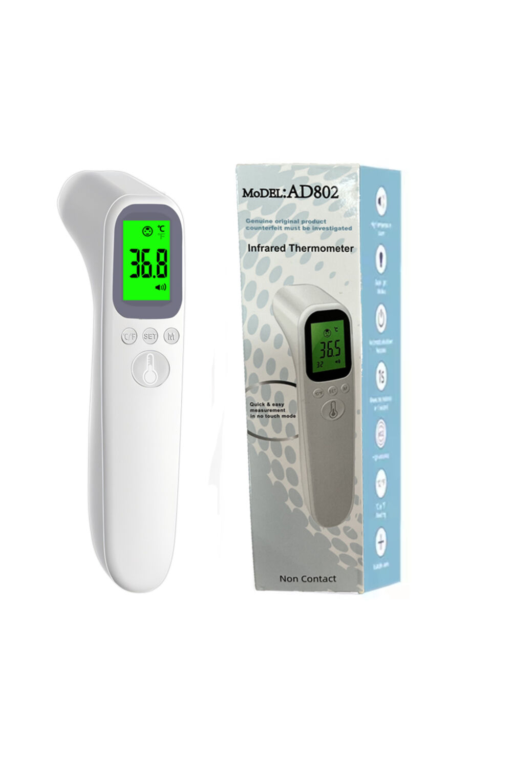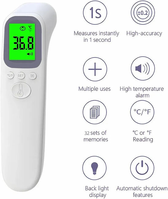 Төхөөрөмжийг асаана. Духнаас ~3–5 см зайд баринаТовчийг дарж хэмжинэ.Дэлгэц дээр температур шууд гарна